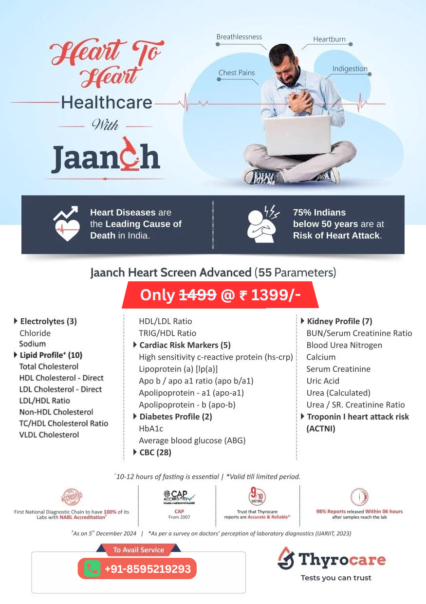 JAANCH HEART SCREEN ADVANCED (55 Tests) @ Rs. 1399