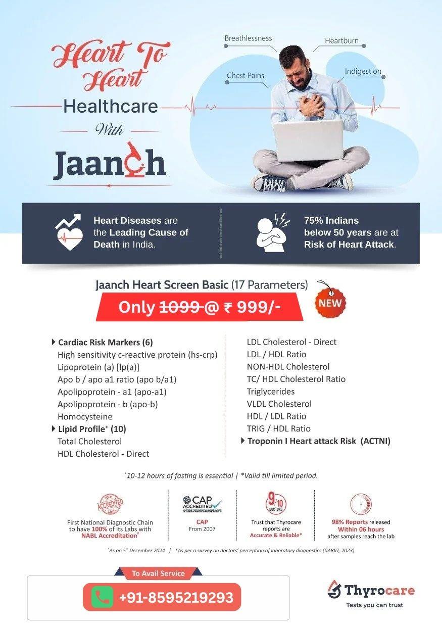 JAANCH HEART SCREEN BASIC (17 Tests) @ Rs. 999