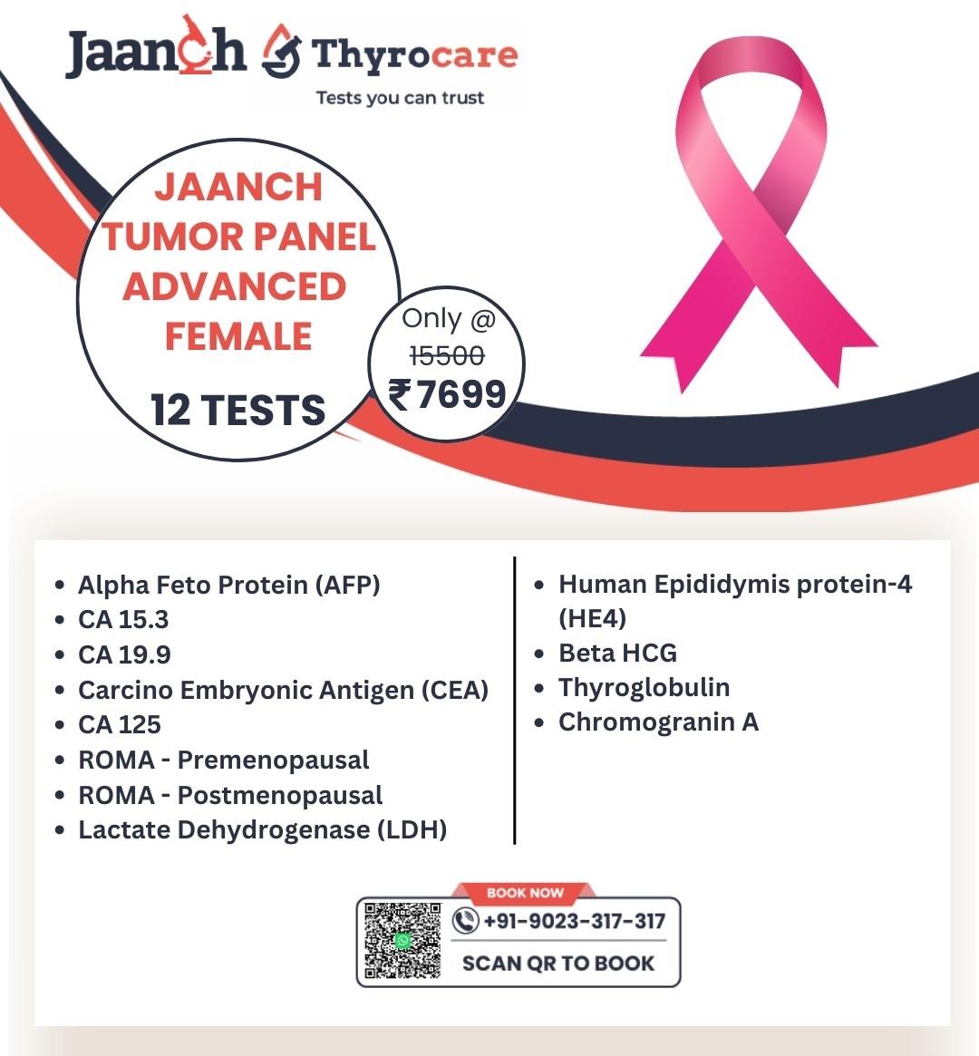 JAANCH - TUMOUR PANEL ADVANCED FEMALE (12 Tests) @ Rs. 4899