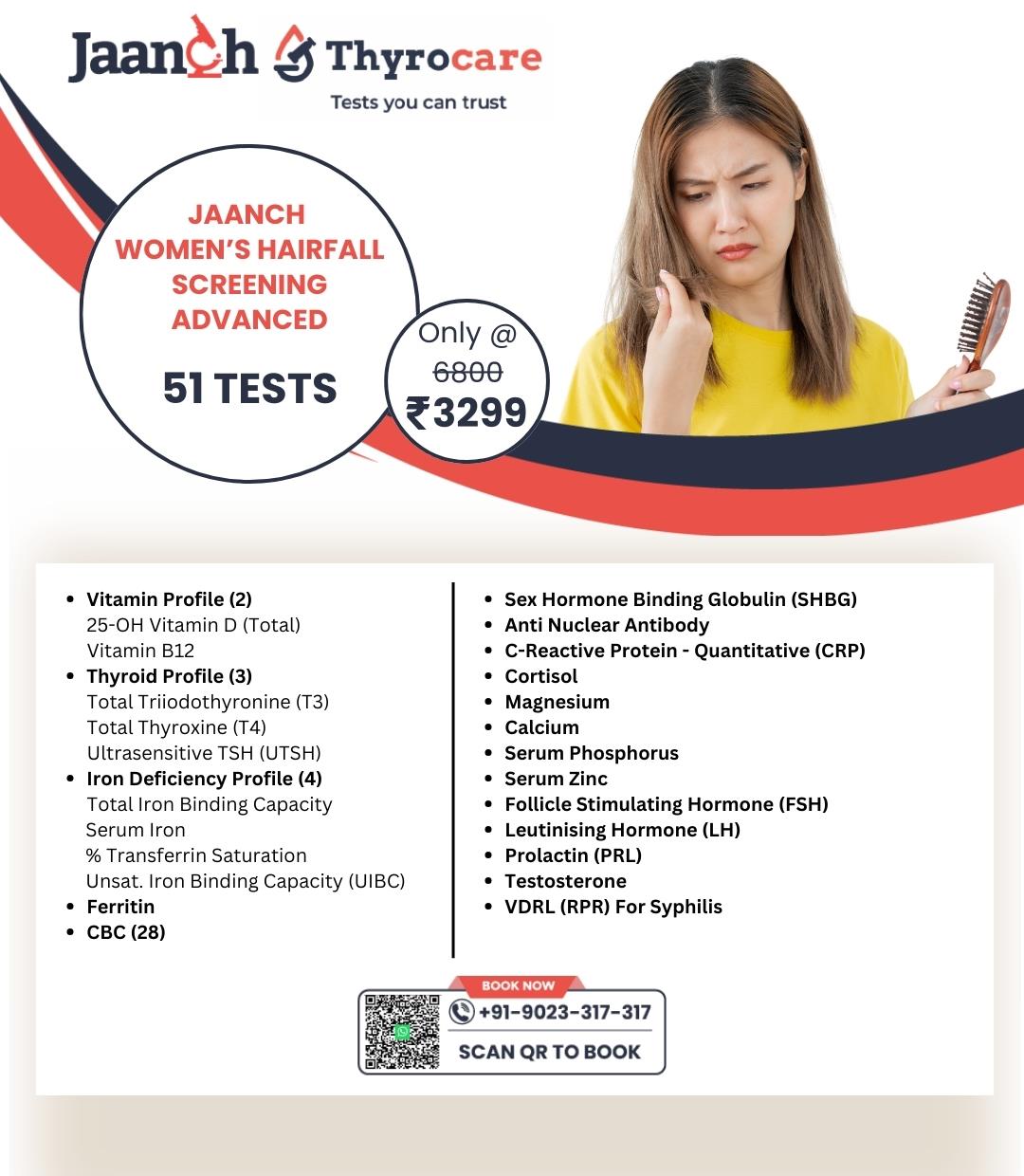 JAANCH - WOMENS HAIRFALL SCREENING ADVANCED (51 Tests) @ Rs. 2450
