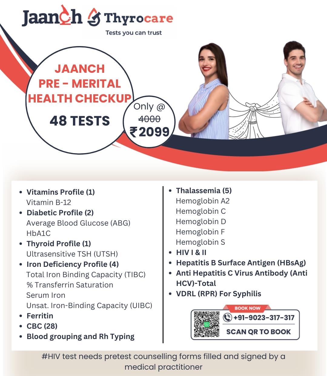 JAANCH PREMARITAL HEALTH CHECK UP (48 Tests) @ Rs. 1799