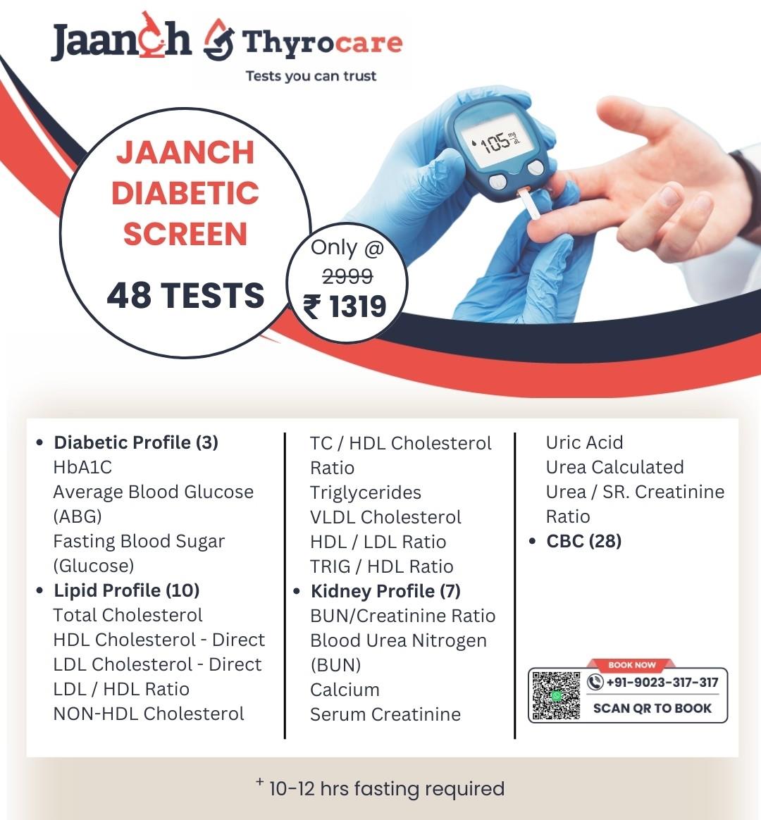 1. What is included in the Jaanch – Diabetic Screen package by Thyrocare?