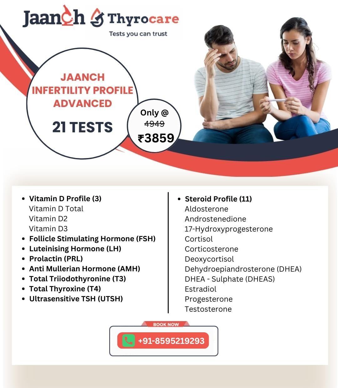 Ans. The Infertility Profile Advanced is a diagnostic package curated by Thyrocare, comprising 21 essential tests. It is designed to evaluate key reproductive hormones in both men and women, helping to identify underlying hormonal imbalances or dysfunctions that may be affecting fertility. This panel supports early diagnosis and medical intervention for couples facing difficulty in conceiving.