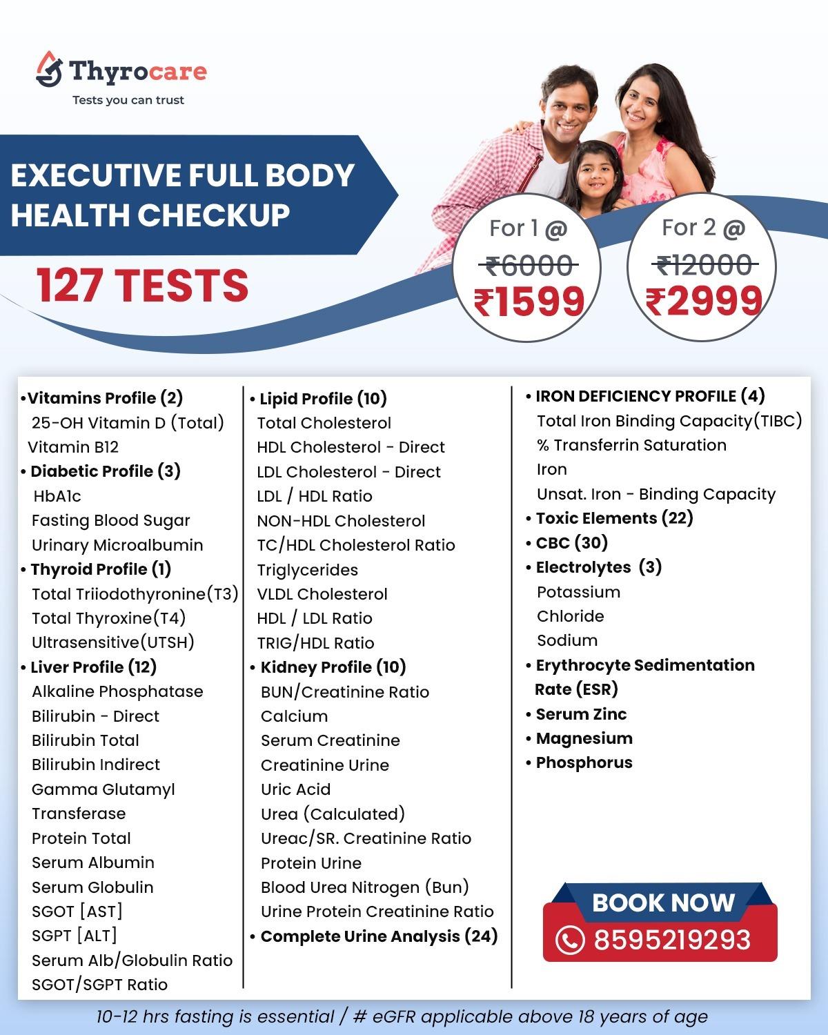 EXECUTIVE FULL BODY HEALTH CHECKUP (127 Tests) @ Rs. 1579