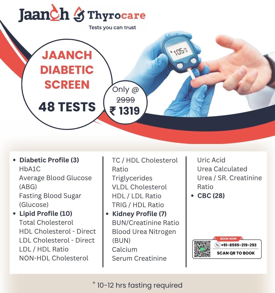 JAANCH - DIABETIC SCREEN (48 Tests) @ Rs. 1319