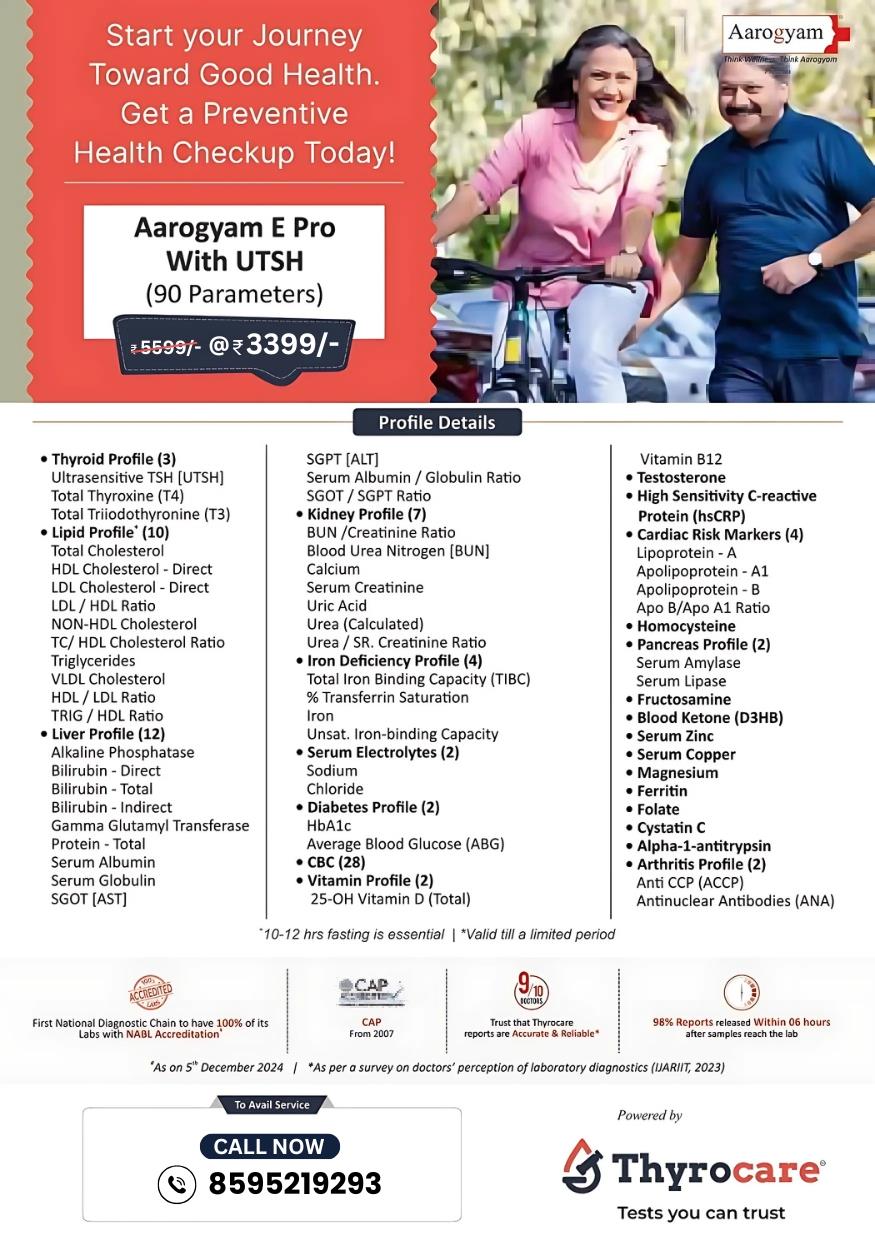 AAROGYAM BASIC 1 (76 Tests) @ Rs. 899