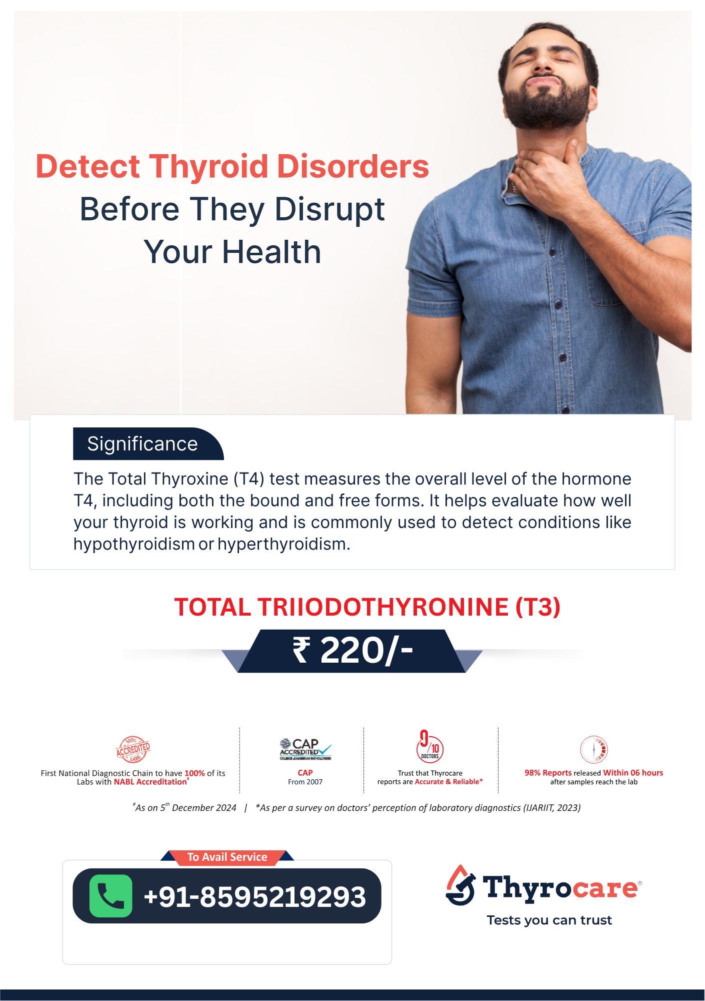 The Thyrocare Total T3 Test is priced at approximately RS 220